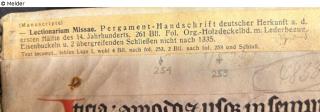 1 Band (262 Blätter); 31,5 x 23,5 cm; Pergament-Handschrift deutscher Herkunft aus der ersten Hälfte des 14. Jahrhunderts; Original Holzdeckeleinband mit Lederbezug und Eisenbuckeln.
