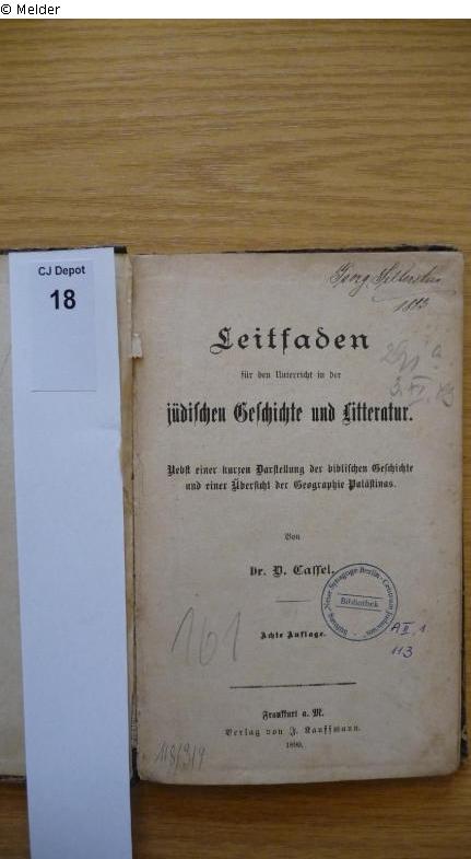 Leitfaden für den Unterricht in der jüdischen Geschichte und Litteratur. Nebst einer kurzen Darstellung der biblischen Geschichte und einer Übersicht der Geographie Palästinas