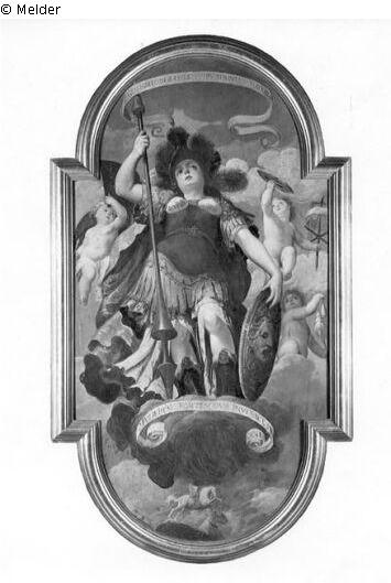 Fundmeldung | Einzelobjekt Minerva (Allegorische weibliche Figur [Deckengemälde]) Lost Art-ID220782 Vorherige Weiter Hersteller/Künstler:in Candid, Peter Geburt (um)1548, Brügge Tod 1628.03, München WirkungsortFlorenz; München TitelMinerva (Allegorische weibliche Figur [Deckengemälde])ObjektartMalereiObjektgruppeMalereiMaterial / TechnikÖl ; Holz / gemalt Höhe 212,00 cm Breite 113,00 cm Inventarnummermü9117Beschreibung Stehende Minerva auf Wolken, in der Rechten Speer, in der Linken das Schild; rechts und links Putten. Weiterlesen Weniger anzeigen Bestand Kulturgüter aus dem ehemaligen ReichsvermögenVeröffentlicht seit2001 Kontakt Kunstverwaltung des Bundes Herbert-Bayer-Straße 5 13086 Berlin Deutschland E-Mailprovenienzforschung@kvdb.bund.deHomepagehttp://www.kunstverwaltung.bund.de
