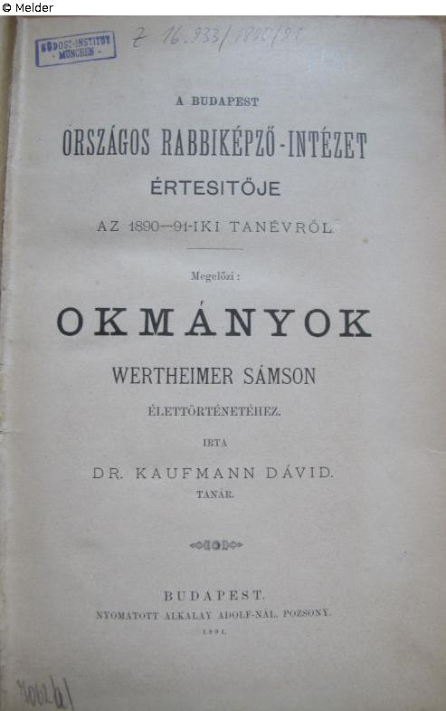 A Budapesti Országos Rabbiképző-intézet Értesitője 1890/91
