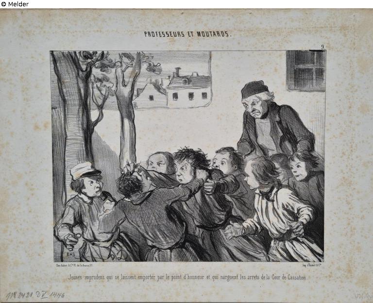 Professeurs et moutards. (Jeunes imprudens qui se laissent emporter par le point d'honneur et qui narguent les arrets de la Cour de Cassation)