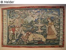 Fundmeldung | Einzelobjekt Pyramus und Thisbe (Pyramos und Thysbe) (Tapisserie) Lost Art-ID582931 Vorherige Weiter Hersteller/Künstler:in Unbekannt TitelPyramus und Thisbe (Pyramos und Thysbe) (Tapisserie)ObjektartGebrauchs- / RaumtextilieObjektgruppeKunsthandwerk / -gewerbeMaterial / TechnikTextil (Wolle) / Bildwirkerei Höhe 120,00 cm Breite 182,00 cm Inventarnummermü5685Beschreibung Gewebte Tapisserie Weiterlesen Weniger anzeigen Bestand Kulturgüter aus dem ehemaligen ReichsvermögenVeröffentlicht seit26.04.2019 Kontakt Kunstverwaltung des Bundes Herbert-Bayer-Straße 5 13086 Berlin Deutschland E-Mailprovenienzforschung@kvdb.bund.deHomepagehttp://www.kunstverwaltung.bund.de