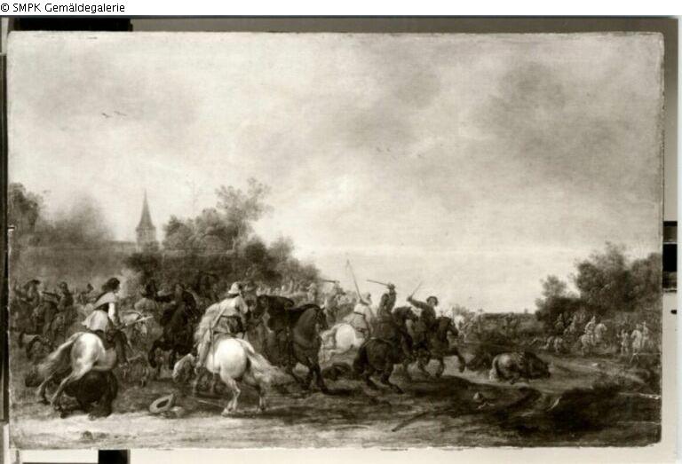 Reitergefecht vor einem Dorf
