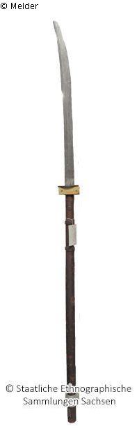 Chinesische Hiebwaffe, am Stiel in weißer Farbe Nr. 1977