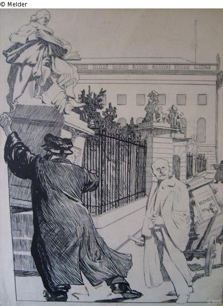 Fundmeldung | Einzelobjekt "Satire auf die Bilderstürmer an der Berliner Universität" Lost Art-ID475433 Vorherige Weiter Hersteller/Künstler:in Gehrke, Fritz Geburt 16.07.1855, Woisenthin (Pommern) Tod 06.1916, oder 07.1916, Berlin WirkungsortBerlin Titel"Satire auf die Bilderstürmer an der Berliner Universität" Datierung1905 (um)ObjektartZeichnungObjektgruppeGrafikMaterial / TechnikBleistift ; Karton / gezeichnet ; gezeichnet (Feder) Höhe 30,90 cm Breite 24,20 cm InventarnummerVII 60/1304 WProvenienz Ankauf aus Kunsthandel (Antiquar Burmeister, Berlin, Kurfürstenstr.81 b), 25.4.1935; Bestand: Märkisches Museum Weiterlesen Weniger anzeigen Veröffentlicht seit24.06.2013 Kontakt Stiftung Stadtmuseum Berlin 10178 Berlin Deutschland Tel(030) 24002150Fax(030) 24002187E-Mailinfo@stadtmuseum.deHomepagehttp://www.stadtmuseum.de Ansprechpartner:in Lukas SeidelTel+49 (0) 353 059-820E-Mailfotothek@stadtmusuem.de