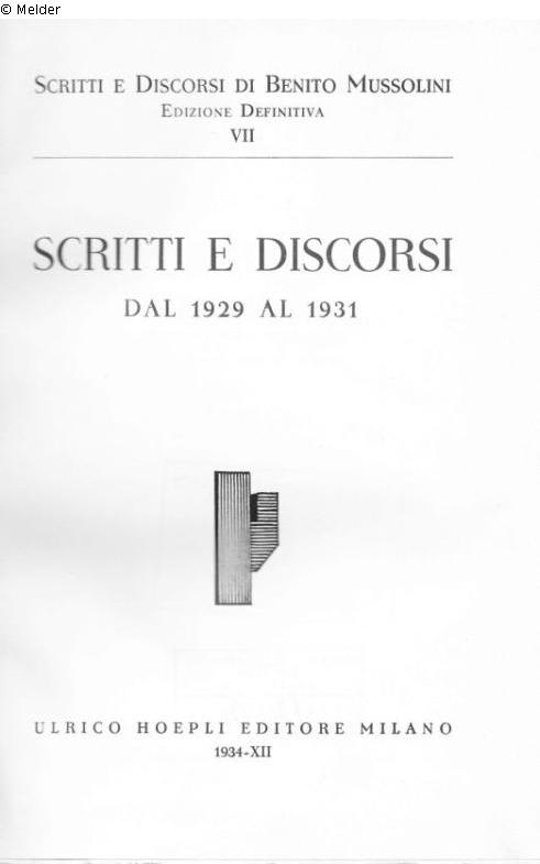 Fundmeldung | Einzelobjekt Scritti e discorsi: Dal 1929 al 1931 Lost Art-ID526941 Vorherige Weiter Autor:in Mussolini, Benito Verlag Hoepli TitelScritti e discorsi: Dal 1929 al 1931ErscheinungsortMilano Erscheinungsdatum1934ObjektartPeriodikaObjektgruppeBibliotheksgutBeschreibung Bd. 7 / Ausgabe: Ed. Definitiva / 346 S. Weiterlesen Weniger anzeigen Provenienz Kaufhaus des Westens, Berlin (Exlibris) / OMGUS (Stempel) - München, IfZ, erworben 1954 Weiterlesen Weniger anzeigen Veröffentlicht seit15.04.2015 Kontakt Institut für Zeitgeschichte Leonrodstr. 46b 80636 München Deutschland Tel089/12688-0Fax089/12688-191Homepagehttp://www.ifz-muenchen.de Ansprechpartner:in Caroline Lamey-UtkuPositionStellvertretende BibliotheksleiterinTel089/12688-147E-Maillamey@ifz-muenchen.de
