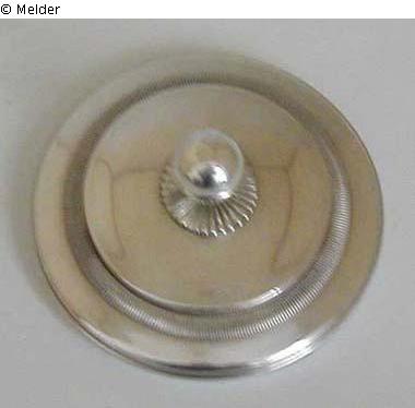 rundabgesetzter Rand, Kugelknauf, punziert, Wiener Beschauzeichen, verschlagen, Meistermarke: M F Wien;