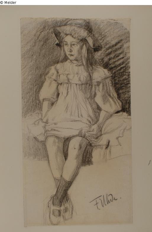 Sitzendes kleines Mädchen mit Hut