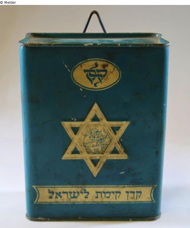 Die rechteckige blaue Blechdose besitzt an der Oberseite den Einwurfschlitz für das Geld. Die Vorderseite ist geprägt durch das Monogramm „KKL“ (Keren Kajemet LeIsrael) sowie einen Davidstern mit einer Abbildung eines Löwen. Zusätzlich befindet sich eine Inschrift am unteren Rand der Büchse. Auf der Rückseite befindet sich ebenfalls ein weißer Davidstern sowie die Aufhängungsvorrichtung. Im Inneren der Dose sind am Einwurfschlitz Ketten befestigt.