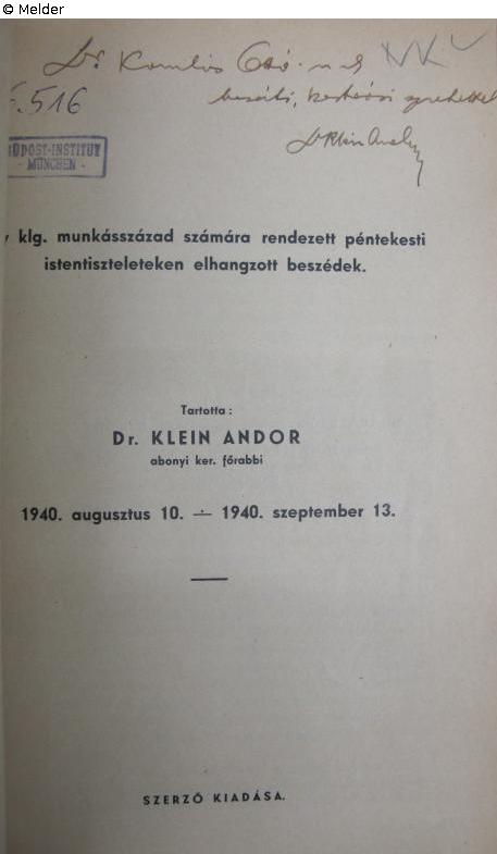 Fundmeldung | Einzelobjekt Testvérem várlak! A magyarzsidó lélek szava ezerkilencszáznegyvenben Lost Art-ID623531 Vorherige Weiter Autor:in Andor Klein Verlag Selbstverlag TitelTestvérem várlak! A magyarzsidó lélek szava ezerkilencszáznegyvenbenErscheinungsortSzeged Erscheinungsdatum1940ObjektartBuchObjektgruppeBibliotheksgutSignaturW 02/16.516Beschreibung 8°, Geschenk des Autors an Dr. Ottó Komlós Weiterlesen Weniger anzeigen Provenienz Verdacht auf Raubgut, 1984 Südost-Institut München (Nachlass Michael Schwartz) Weiterlesen Weniger anzeigen Status restituiert Veröffentlicht seit08.10.2024 Kontakt Leibniz-Institut für Ost- und Südosteuropaforschung Bibliothek Landshuter Str. 4 93047 Regensburg Deutschland Homepagehttps://leibniz-ios.de/bibliothek/ueber-die-bibliothek Ansprechpartner:in Tillmann Tegeler, M. A.PositionArbeitsbereich Bibliothek und elektronische Forschungsinfrastruktur Leiter des ArbeitsbereichsE-Mailtegeler@ios-regensburg.de