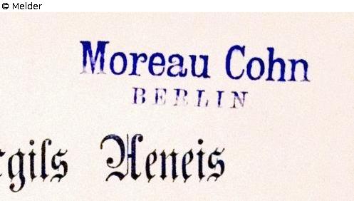 Provenienzmerkmale: „Moreau Cohn / Berlin“ [Stempel auf Titelblatt] und „Moreau Cohn“ [hschr. Eintragung auf angeklebtem vorderem Vorsatz]