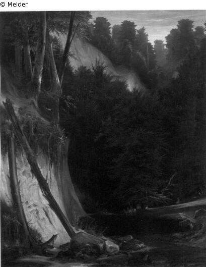 Fundmeldung | Einzelobjekt Waldschlucht mit Rotwild (Waldlandschaft mit Weiher und Hirschen) Lost Art-ID219049 Vorherige Weiter Hersteller/Künstler:in Blechen, Karl Geburt 1798.07.29, Cottbus Tod 1840.07.23, Berlin WirkungsortBerlin TitelWaldschlucht mit Rotwild (Waldlandschaft mit Weiher und Hirschen)ObjektartMalereiObjektgruppeMalereiMaterial / TechnikÖl ; Leinwand / gemalt Höhe 99,50 cm Breite 82,00 cm Inventarnummermü11819Beschreibung Weiher im Walde, rechts steil aufsteigende Berge (Kalkbruch), rechts Waldwiese, im Hintergrund unter Bäumen Hirsch und zwei Hirschkühe. Weiterlesen Weniger anzeigen Bestand Kulturgüter aus dem ehemaligen ReichsvermögenVeröffentlicht seit2001 Kontakt Kunstverwaltung des Bundes Herbert-Bayer-Straße 5 13086 Berlin Deutschland E-Mailprovenienzforschung@kvdb.bund.deHomepagehttp://www.kunstverwaltung.bund.de