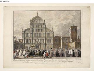 Fundmeldung Der Doge besucht San Zaccaria am Ostertag Blatt 10 aus der Folge "Le Feste Ducali" Hersteller/Künstler:in Brustolon, Giovanni Battista Hersteller/Künstler:in Canaletto, Antonio Objektart Druckgrafik Material / TechnikPapier / gedruckt (Kupferstich) koloriertLost Art-ID617613