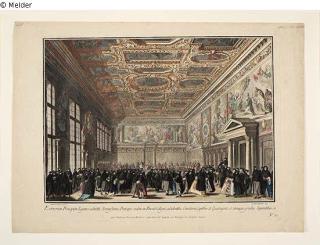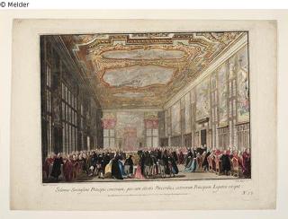 Fundmeldung Die Wahl des Dogens im Grossen Rat Blatt 4 aus der Folge "Le Feste Ducali" Hersteller/Künstler:in Brustolon, Giovanni Battista Hersteller/Künstler:in Canaletto, Antonio Objektart Druckgrafik Material / TechnikPapier / gedruckt (Kupferstich) koloriertLost Art-ID617609