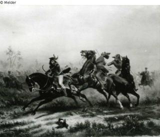 restituiert Suchmeldung General Murat, im Gefecht bei Liebertwolkwitz am 14. Oktober 1813 vom Dragonerleutnant zur Lippe verfolgt Hersteller/Künstler:in Camphausen, Wilhelm Objektart Malerei Lost Art-ID79914
