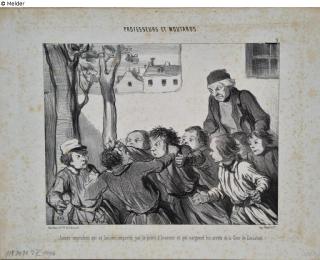 Fundmeldung Professeurs et moutards. (Jeunes imprudens qui se laissent emporter par le point d'honneur et qui narguent les arrets de la Cour de Cassation) Hersteller/Künstler:in Daumier, Honoré Objektart Druckgrafik Material / TechnikPapier / gedruckt (Lithographie)Lost Art-ID626487
