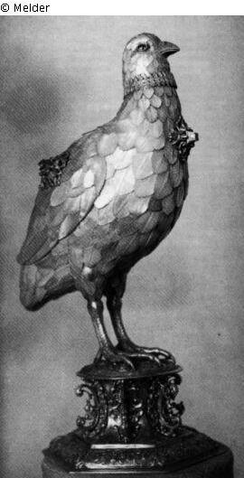 Suchmeldung Willkommspokal in Gestalt eines Rebhuhnes Hersteller/Künstler:in Hillebrandt, Friedrich Objektart Gefäß Material / TechnikMetall (Silber) ; Perlmutt ; Saphir ; Granat / teilvergoldet...Lost Art-ID208514