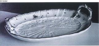 Suchmeldung Ovale Untersatzplatte mit Schilfhenkeln, gross, aus dem Schwanenserivce für Heinrich Graf von Brühl Schale oval mit Asthenkel Hersteller/Künstler:in Kaendler, Johann Joachim Manufaktur Porzellanmanufaktur Meissen Objektart Kunsthandwerk / -gewerbe Material / TechnikKeramik (Porzellan) ; Emaillefarbe ; Edelmetallfarbe gold /...Lost Art-ID623643