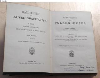 Fundmeldung Geschichte des Volkes Israel - in 2 Bänden Band 1: Palästina in der Urzeit. Das Werden des Volkes. Quellenkunde und Geschichte der Zeit bis zum Tode Josuas. Band 2: Das Volk in Kanaan. Geschichte der Zeit bis zum babylonischen Exil. 4., aufs neue durchgearbeitete Auflage Autor:in Kittel, Rudolf Verlag Friedrich Andreas Perthes Objektart Buch Lost Art-ID600631