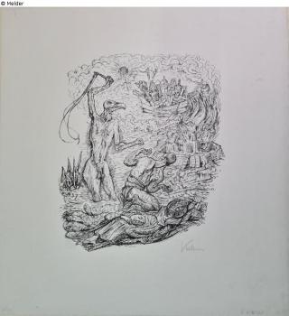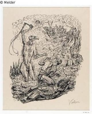 Fundmeldung Untergangsvision mit geiselschwingendem Ungeheuer Hersteller/Künstler:in Kubin, Alfred Objektart Druckgrafik Material / TechnikPapier / gedruckt (Lithographie)Lost Art-ID429433