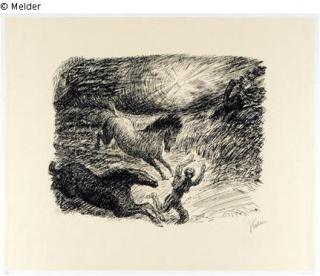 Fundmeldung Mann mit zwei wilden Pferden im Sturm flüchtend Hersteller/Künstler:in Kubin, Alfred Objektart Druckgrafik Material / TechnikPapier / gedruckt (Lithographie)Lost Art-ID429432