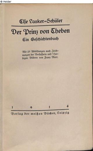 Fundmeldung <<Der>> Prinz von Theben Autor:in Lasker-Schüler, Else Verlag Verl. d. weißen Bücher Objektart Buch Lost Art-ID631972