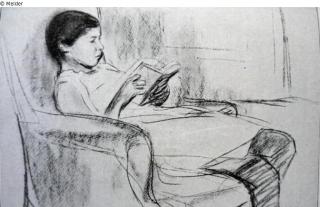 Suchmeldung Frau (Martha Liebermann) auf dem Sofa liegend u. lesend Hersteller/Künstler:in Liebermann, Max Objektart Zeichnung Material / TechnikKreide / gezeichnetLost Art-ID417879