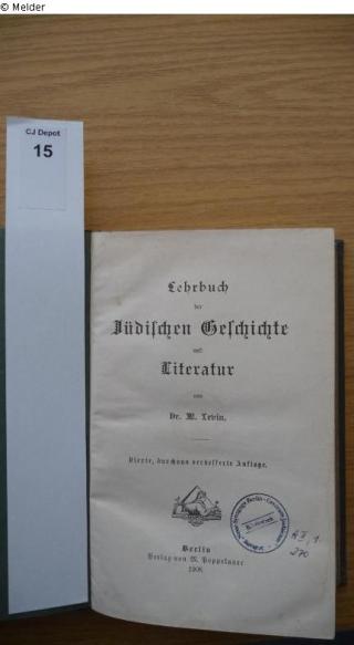 Fundmeldung Lehrbuch der jüdischen Geschichte und Literatur Autor:in Levin, M. Verlag M. Poppelauer Objektart Buch Material / TechnikgebundenLost Art-ID452534