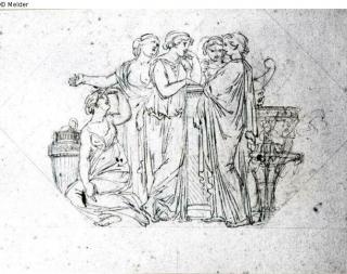 Fundmeldung Fünf weibliche Figuren in antiker Tracht Hersteller/Künstler:in Richter, August (1801) Objektart Zeichnung Material / Technikgezeichnet (Feder)Lost Art-ID219970