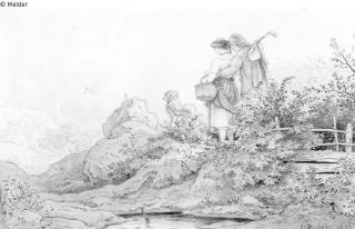 Suchmeldung Landschaft mit Regenbogen, vorn eine Schafherde im Bach Hersteller/Künstler:in Richter, Ludwig (1803) Objektart Zeichnung Material / TechnikGraphit ; WasserfarbeLost Art-ID182565