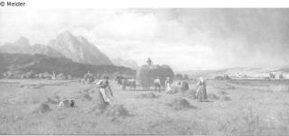 Fundmeldung Vorgebigrslandschaft mit Heuernte Hersteller/Künstler:in Schleich, Robert Objektart Malerei Material / TechnikÖl ; Holz / gemaltLost Art-ID219565