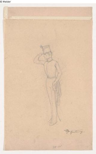 Fundmeldung Österreichischer Offizier, grüßend Hersteller/Künstler:in Spitzweg, Carl Objektart Zeichnung Material / TechnikPapier ; Bleistift / gezeichnetLost Art-ID596314