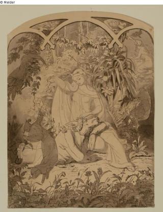 Fundmeldung Szene aus dem Sommernachtstraum Hersteller/Künstler:in Trost, Carl Objektart Zeichnung Material / TechnikPapier ; Bleistift / gezeichnet (Feder)Lost Art-ID584315
