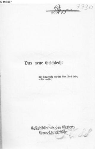 Fundmeldung Das neue Geschlecht: ein Erziehungsbuch Autor:in Kabisch, Richard Verlag Vandenhoeck & Ruprecht Objektart Buch Lost Art-ID526936