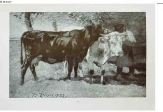 restituiert Fundmeldung Zwei Kühe auf der Weide [Zwei Kühe auf der Weide unter Kopfweiden] Hersteller/Künstler:in Zügel, Heinrich von Objektart Gemälde Material / TechnikÖl ; Leinwand / gemaltLost Art-ID218862