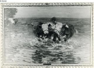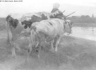 Fundmeldung Kühe an der Tränke Hersteller/Künstler:in Zügel, Heinrich von Objektart Gemälde Material / TechnikÖl ; Leinwand / gemaltLost Art-ID529860