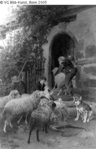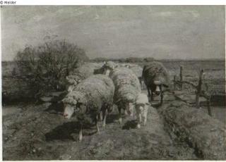 Fundmeldung Mutterschafe kommen in den Stall Hersteller/Künstler:in Zügel, Heinrich von Objektart Gemälde Material / TechnikÖl ; Leinwand / gemaltLost Art-ID565767