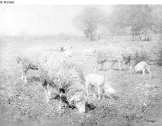 Suchmeldung Schafherde am frühen Morgen Hersteller/Künstler:in Zügel, Heinrich von Objektart Malerei Lost Art-ID16361