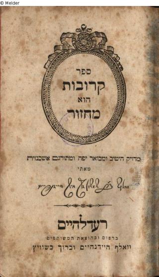 Fundmeldung Seder krovot hu mahzor (Machsor) Drucker:in Wolf Heidenheim und Baruch M. Baschwitz Objektart Buch Lost Art-ID304018