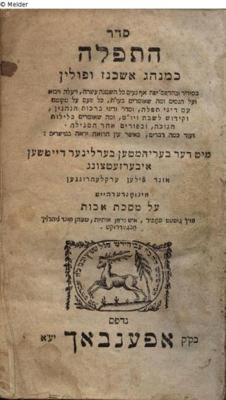 Fundmeldung Seder tefilot ke-minhag ashkenaz we-polyn (Gebetbuch nach deutschem und polnischem Brauch) Drucker:in Zvi Hirsh SG"L Spitz (?) und sein Sohn Avraham SG"L Objektart Buch Lost Art-ID304019