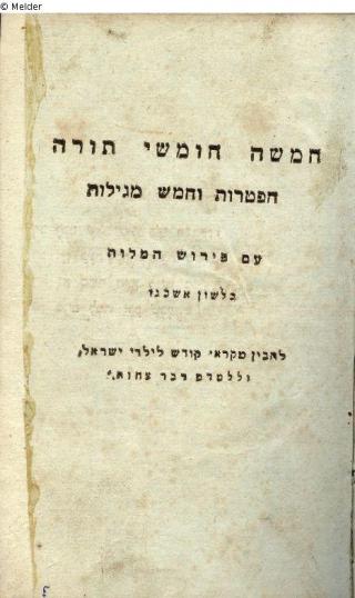 Fundmeldung Ha-mishnah humshei torah, haftarot we-hamesh megilot im pirush ha-malot be-lashon ashkenaz (Die Mischna zum Pentateuch mit Haftarot und den fünf Megilot mit Kommentar in deutscher Sprache) Objektart Buch Lost Art-ID304025