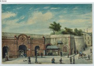 Fundmeldung Das Gautor von der Stadtseite Hersteller/Künstler:in Schmitt, Stephan Objektart Aquarell Material / TechnikWasserfarbe ; Pappe / aquarelliert ; gezeichnet (Feder)Lost Art-ID318961