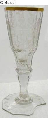 Fundmeldung Stengelglas Hersteller/Künstler:in Unbekannt (Böhmisch) Objektart Gefäß Material / TechnikGlas / geschnitten ; geschliffen ; vergoldetLost Art-ID237858