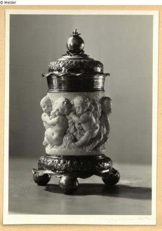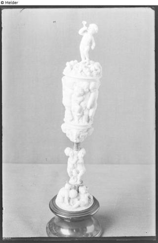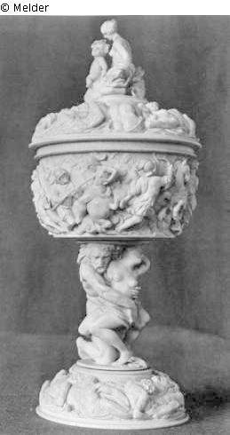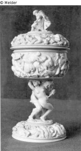Elfenbein ; Metall (Silber) / geschnitzt ; vergoldet