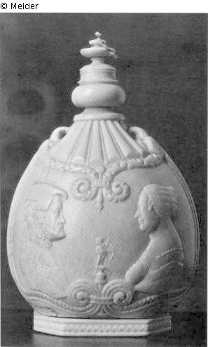 Elfenbein ; Metall (Silber) / geschnitzt ; gefasst...