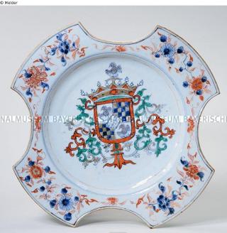 Fundmeldung Barbierschüssel mit vier Ausnehmungen, Wappen und Blumendekor Hersteller/Künstler:in Unbekannt Objektart Gefäß Material / TechnikKeramik (Porzellan) / bemaltLost Art-ID532925
