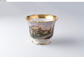 Fundmeldung Tasse "Tübingen" mit Stadtansicht mit Schloss Hohentübingen und Neckar vom Hirschauer Steg aus Hersteller/Künstler:in Unbekannt Objektart Gefäß Material / TechnikKeramik (Porzellan)Lost Art-ID578006