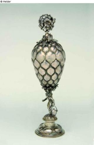 Fundmeldung Traubenpokal (auch Ananaspokal genannt) Hersteller/Künstler:in Erhard Warnberger; Augsburg Objektart Gefäß Material / TechnikMetall (Silber)Lost Art-ID578031