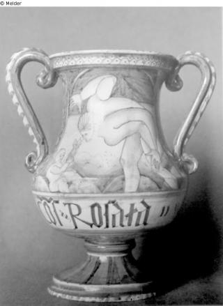 Suchmeldung Zweihenklige Vase Hersteller/Künstler:in Unbekannt (Italienisch (Faenza oder Deruta)) Objektart Gefäß Material / TechnikKeramikLost Art-ID526654