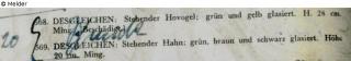 Suchmeldung Fayence-Dachreiter: Stehender Ho-Vogel Hersteller/Künstler:in Unbekannt Objektart Kunsthandwerk / -gewerbe Material / TechnikKeramik (Ton) ; Glasur (Fayence) grünLost Art-ID582770